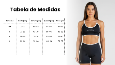 O conjunto é formado pelo top freedom com alças finas e reguláveis, ele se adapta perfeitamnte ao corpo, garantindo sustentação na medida certa.